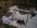 Gray Road, April 2015, found artefacts on the slabs of the foundations of the ruined shed. Various pieces of ironwork, including 200 rusted three inch nails and model railway track.