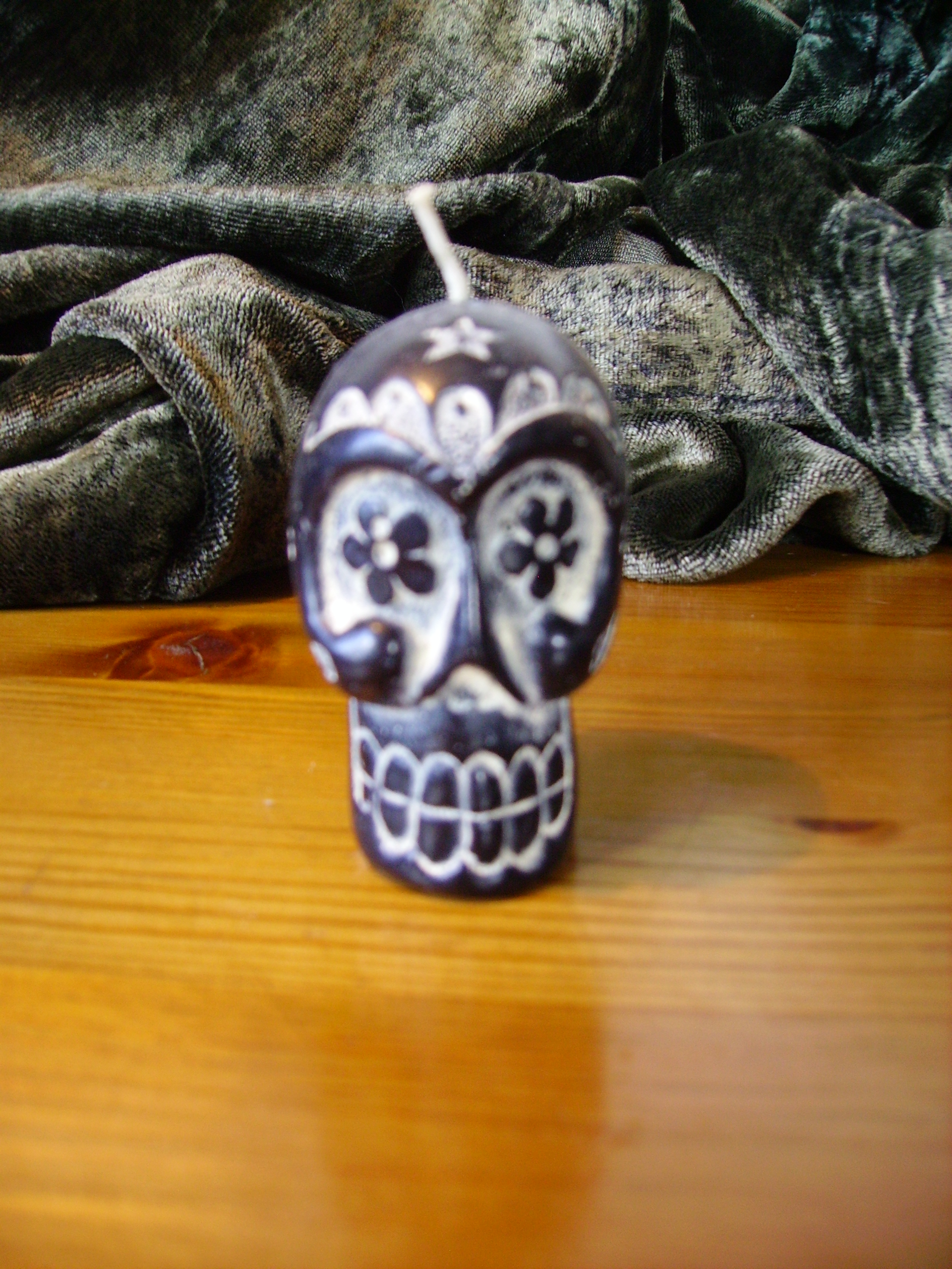 55th Birthday Skull. Tealight holder in resin. Gifted by Heather and Martha McVey. July 2018.