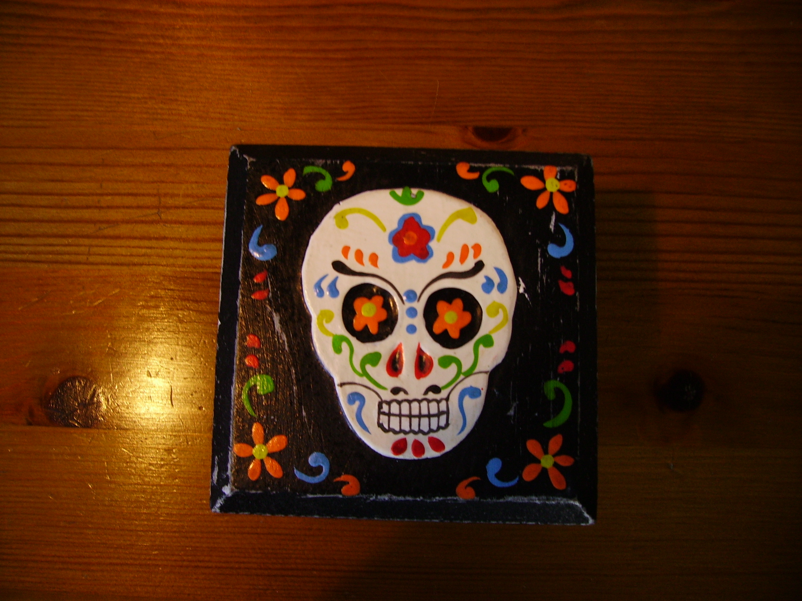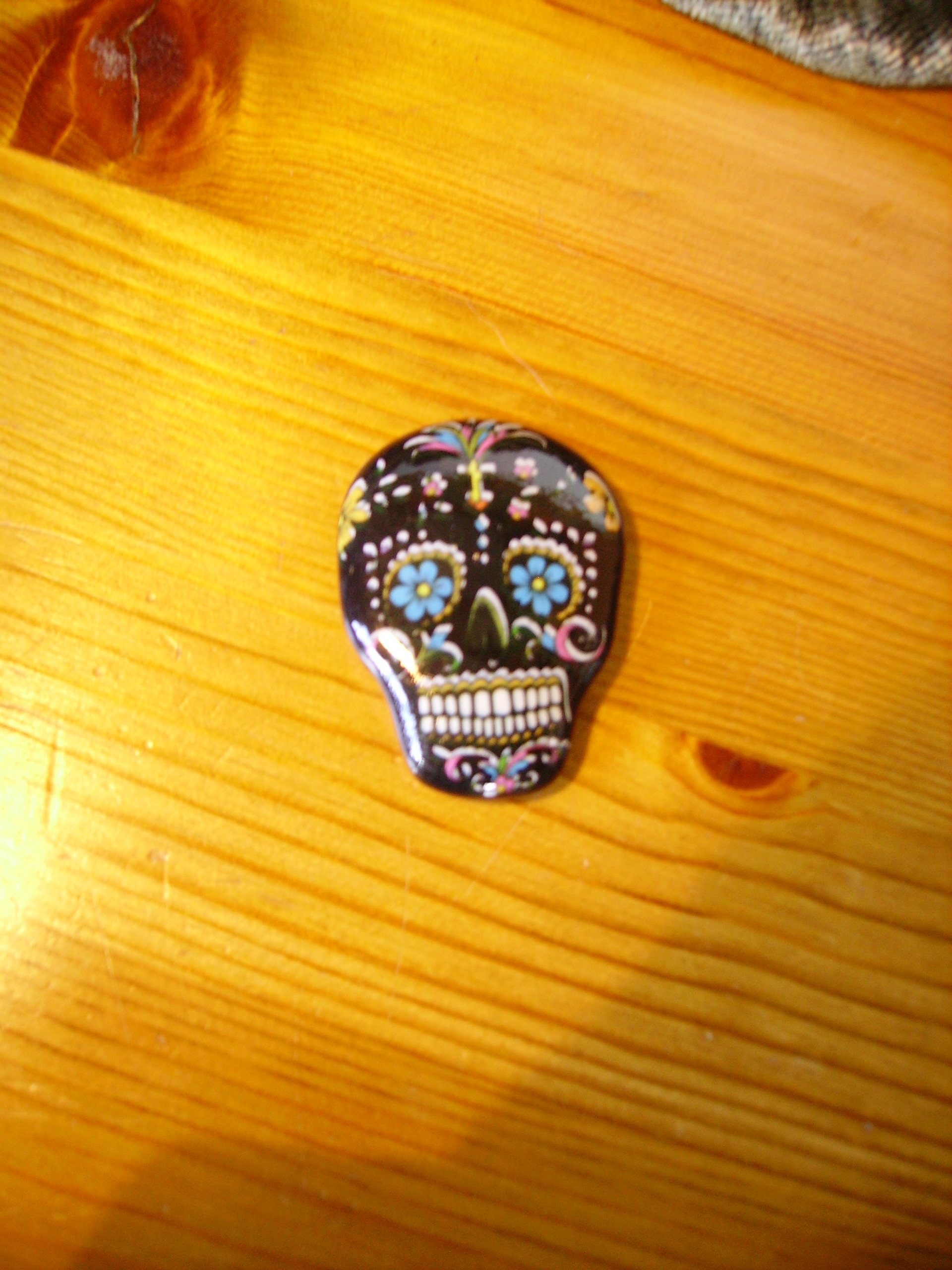 Painted skull fridge magnet. Imported by Evolution, Cambridge 2010. Collected by B. Basura