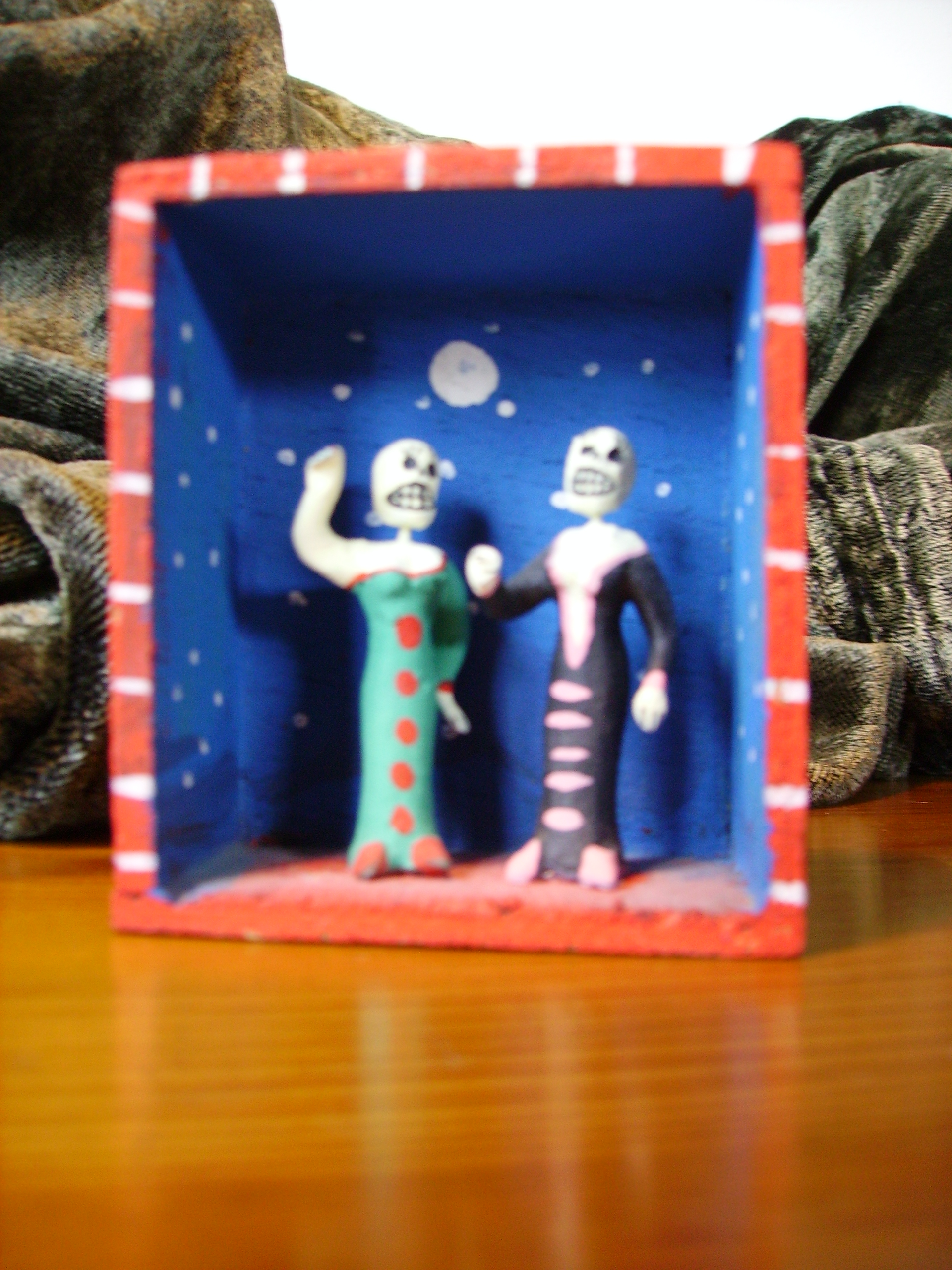 Calavera Ladies of the night boxed tableau. Los Angeles 1994. Donated by J. Kalinowski