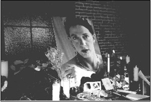 Early in 1998 I attended a memorial night held in San Francisco for this experimental novelist. In one of the big trendy warehouse-style clubs on Folsom and 11th Streets, in the increasingly hip South of Market district, friends and admirers of the writer gathered for an evening of readings, song and memories. One of the most notable readers at the memorial night was a Mambo, who lit a white, a red and a black candle and explained the journey that the soul makes from life to death, the journey that Kathy’s soul was now undertaking. She rang a bell and recited a translation of an oral poem, leading us all in call and response chorus, in which the women, speaking as protective goddesses, called out to Kathy and the men, speaking as men called out in support, urged Kathy’s soul onward. Finally peace and silence fell and the Mambo placed her three candles on an altar table set by the side of the stage, which was decorated with flowers and a photograph of Kathy Acker.