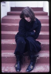 I found one photograph in an image search that tugged my memory, that reminded me of a part of the story I had forgotten. The photo of Nico dressed entirely in black, a pudgy middle-aged woman, hunched forward, staring down at her feet, her motorcycle boots wilting unbuckled, stilled in time. Exactly how I seen her before the show, in a tiny scrubby playground behind the venue, where I stopped to smoke a cigarette. As I sat she caught my eye with her pacing, boots flapping, she circled the seesaw, stopped short of the swings, then slumped herself onto the bench opposite me, just like the internet photo. I don’t think she even registered me there. I wanted, I wanted to run over to her, embrace her, fawn over her, beg her to bless me, but I couldn’t bring myself to do it. She’d have despised me, I am sure, she’d have sneered at my fangirl superficiality. I don’t know, it’s hard being young and desperate to be cool. In anycase, she was obviously waiting for the man, the moment had passed. I finished my cigarette just as a shoddy dead-eyed street junkie sloped into view, he circled the seesaw and sidled to her bench.